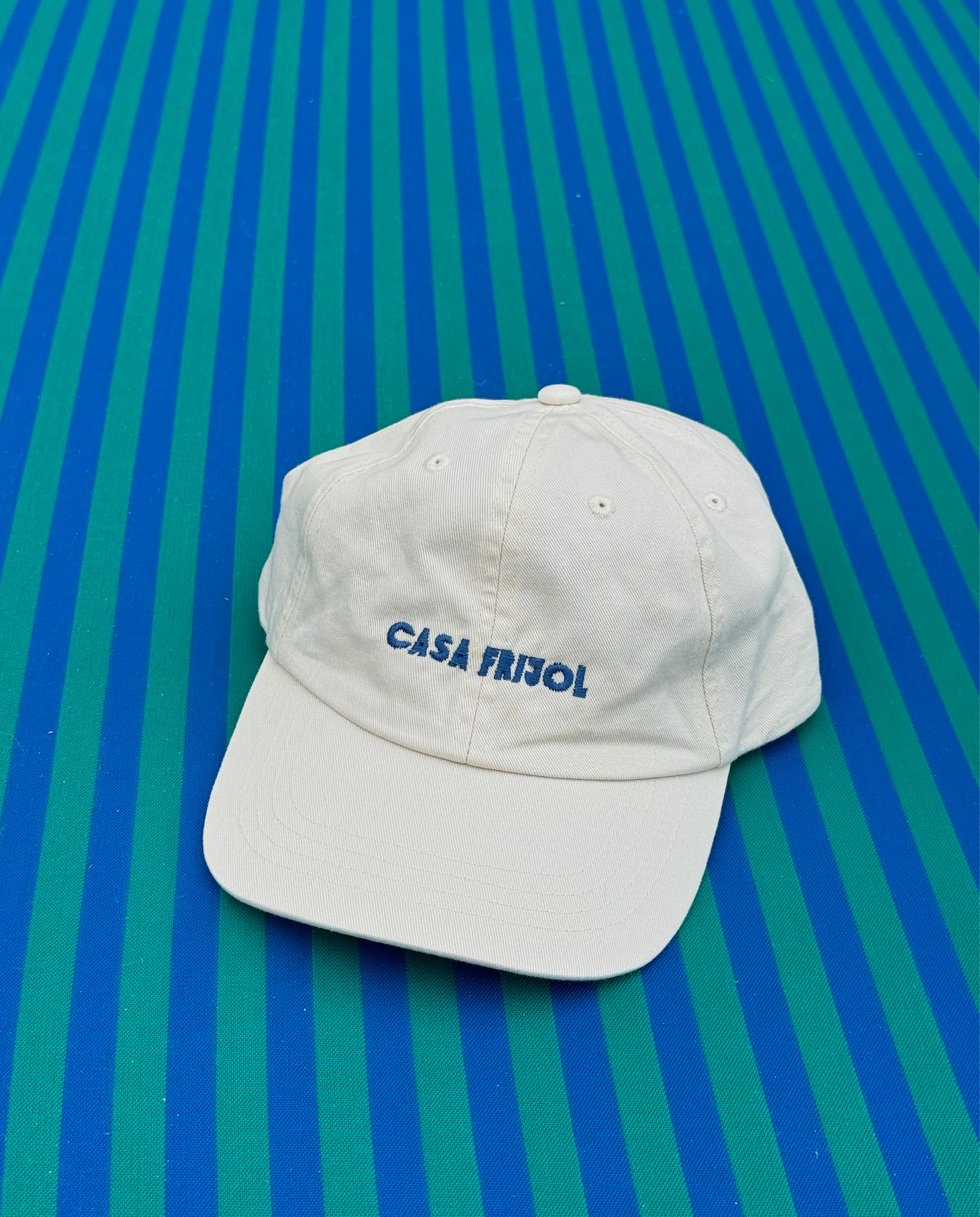 Un clásico que nunca falla: Café Cupido, la gorra blanca bordada a mano en los talleres de Casa Frijol en Barcelona.
